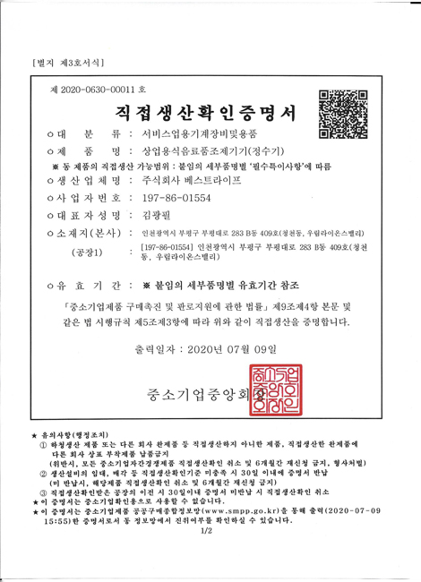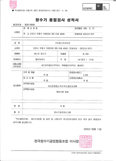 정수기제조업신고증명서