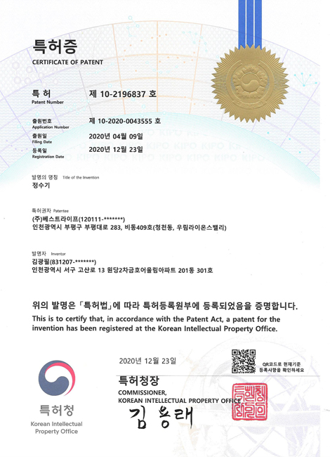 다년간 축적된 노하우와 가족이 물을 먹는다는 생각으로 정성들여 정수기를 만들었습니다.