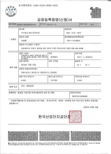 공장등록증명서